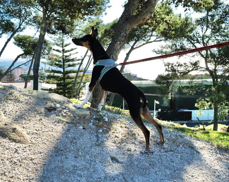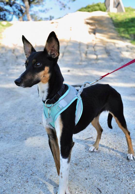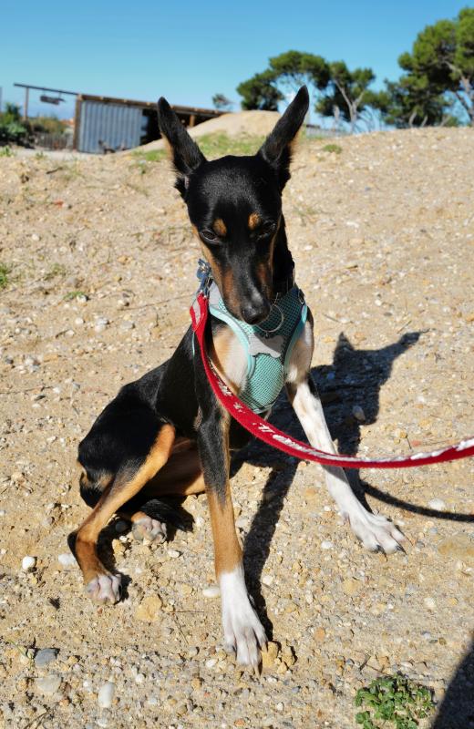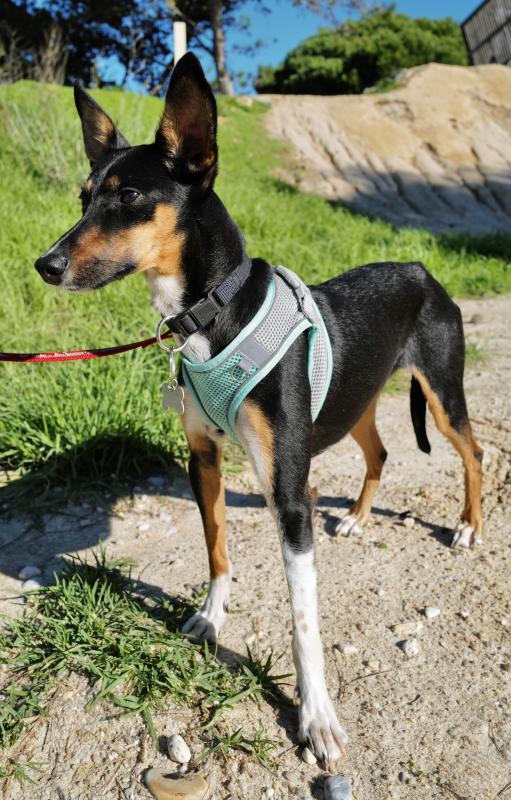 Está agora numa família de acolhimento temporário e, mesmo continuando assustada, já fez progressos maravilhosos. Está a habituar-se a viver numa casa, a ganhar confiança com humanos e a aprender a andar à trela. Anda bem de carro.