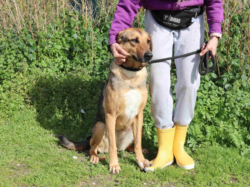 A Josy é muito doce, meiga e sociável com pessoas e com outros cães. Está sempre bem-disposta, a abanar a cauda, não é tímida e é uma cadela fácil e adaptável. Passeia bem à trela. Quem a adotar vai ter muita sorte!