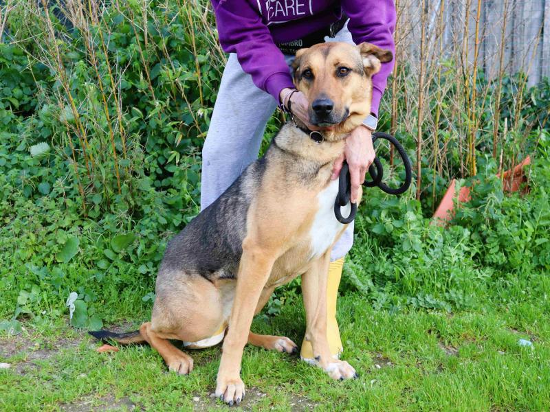 A Josy foi encontrada na rua juntamente com o irmão e ambos foram levados para o abrigo. A Josy chegou a ser adotada, mas foi devolvida pouco tempo depois porque, alegadamente, saltava a vedação. É uma cadela de porte grande e, sim, é perfeitamente capaz de saltar, mas os cães não devem ser deixados sozinhos no quintal sem companhia nem estímulos. Provavelmente estava aborrecida e à procura de atenção. No abrigo, nunca tentou saltar nenhuma vedação. Temos a certeza de que há uma família muito melhor à espera dela.