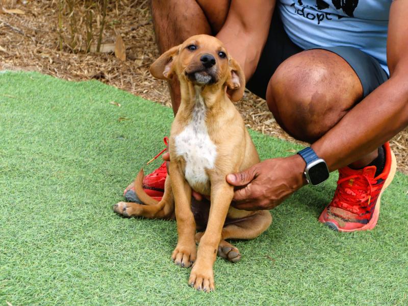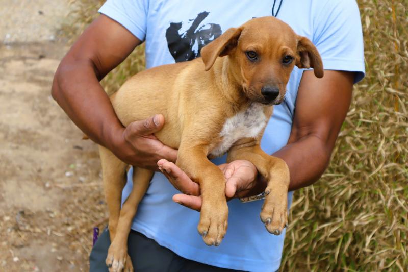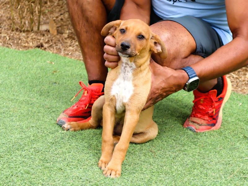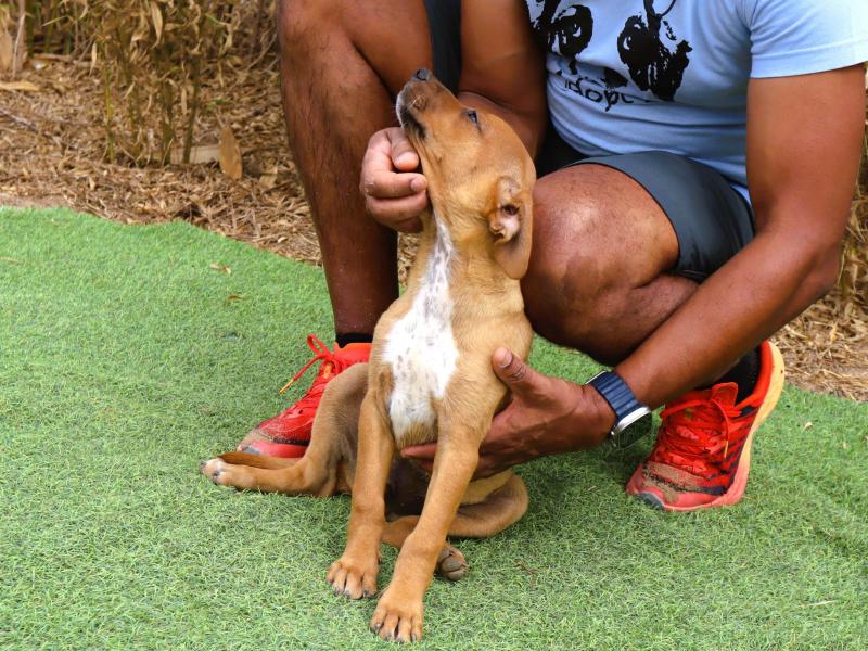 O Marron foi encontrado na rua com os seus dois irmãos. É um cachorrinho muito meigo e simpático, habituado ao contacto com pessoas e super sociável com outros cães.