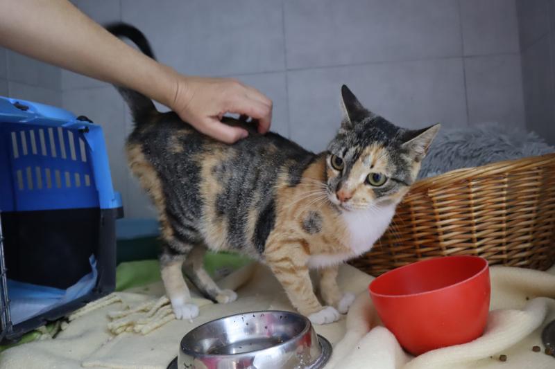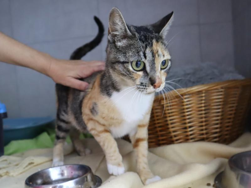 Ainda está um pouco desconfiada, pois tudo é novo para ela e ainda não nos conhece bem, mas já começa a apreciar mimos e atenção.