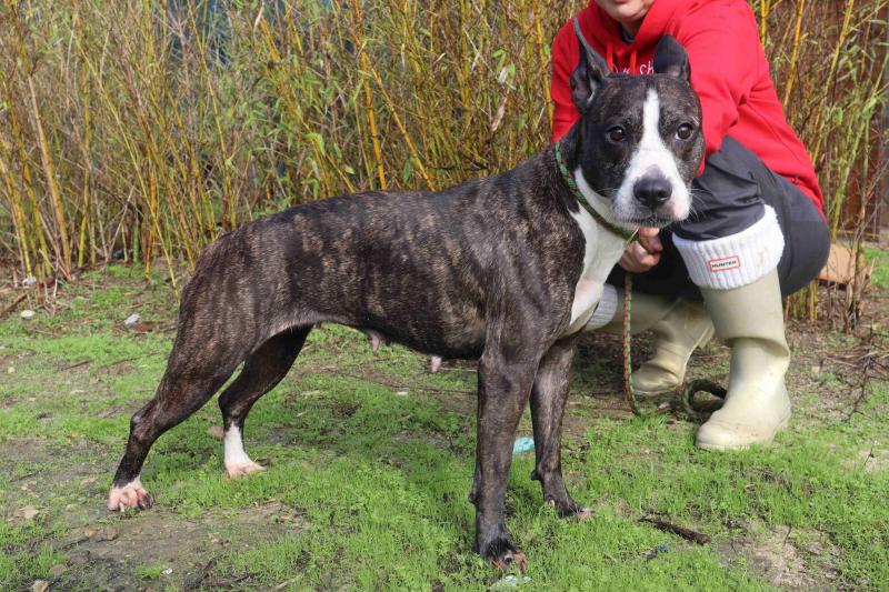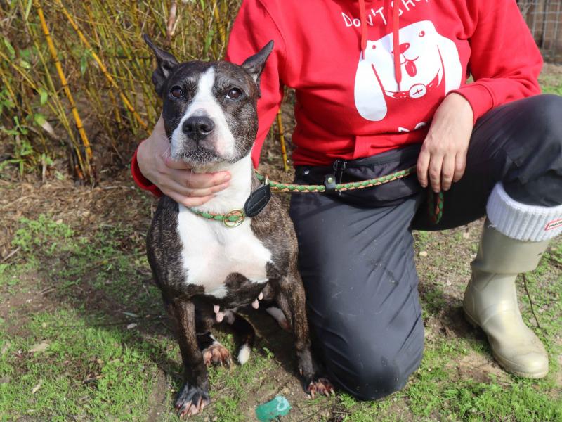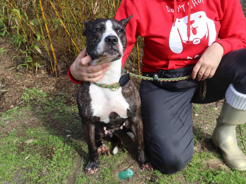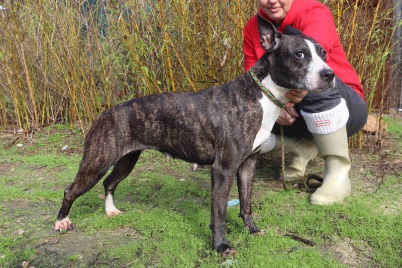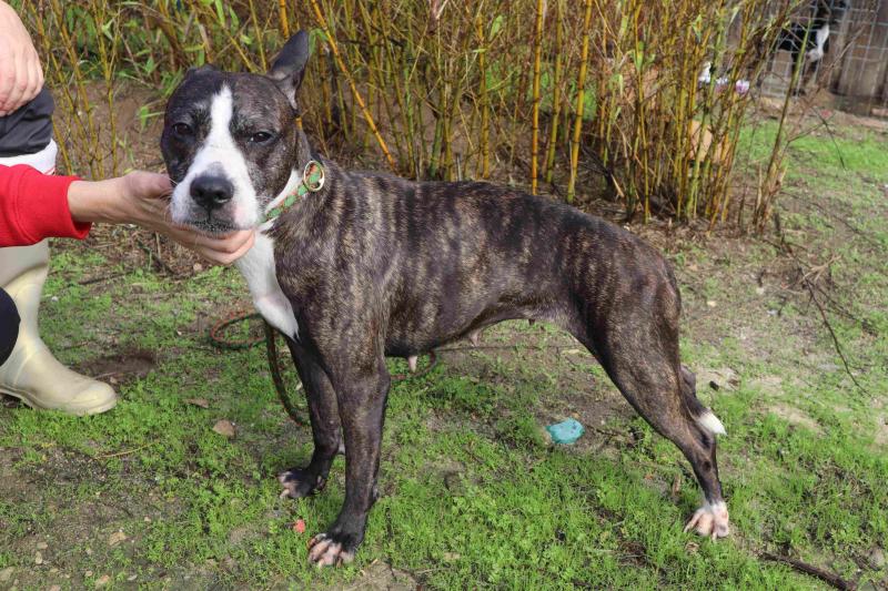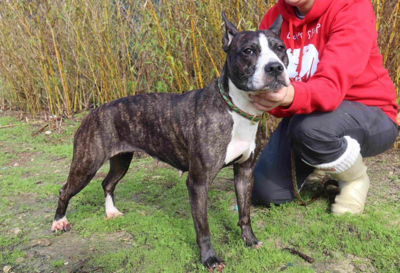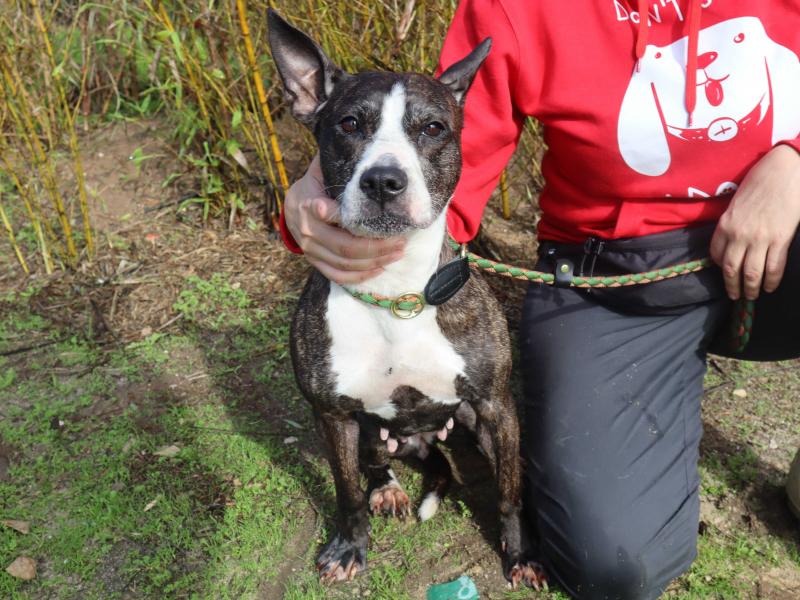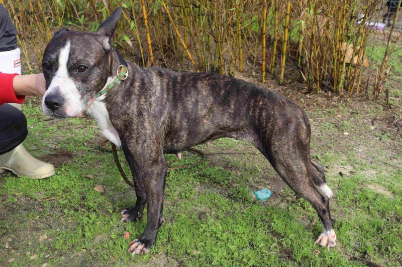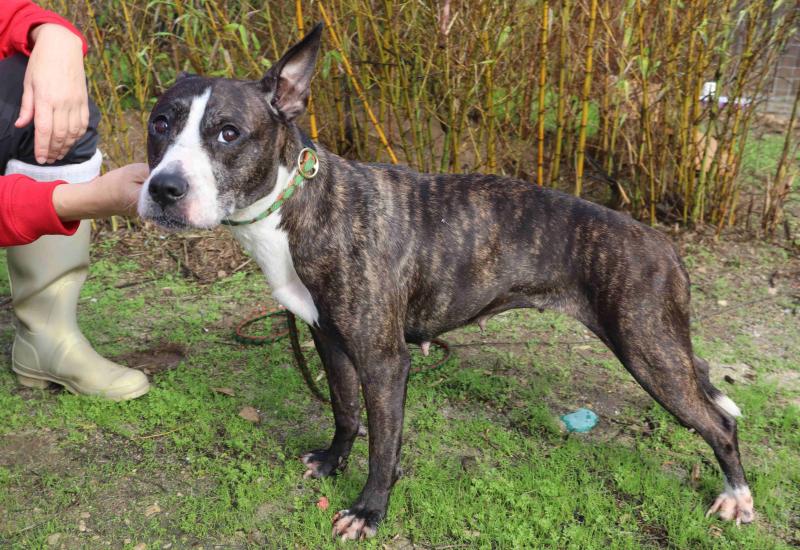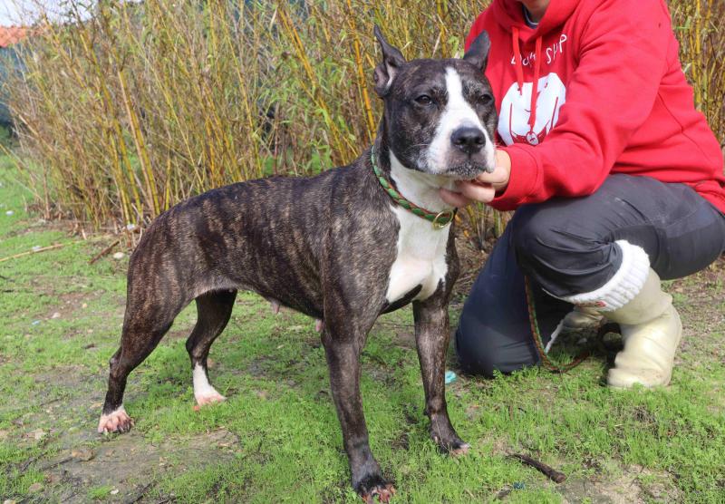 É muito simpática com outros cães, sociável, brincalhona e até submissa. Uma menina realmente meiga. Passeia bem à trela.