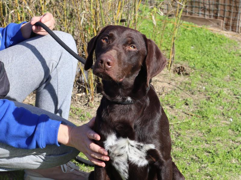 É um cão muito meigo e amigável. Está habituado a pessoas, adora companhia humana e passeia muito bem à trela.
