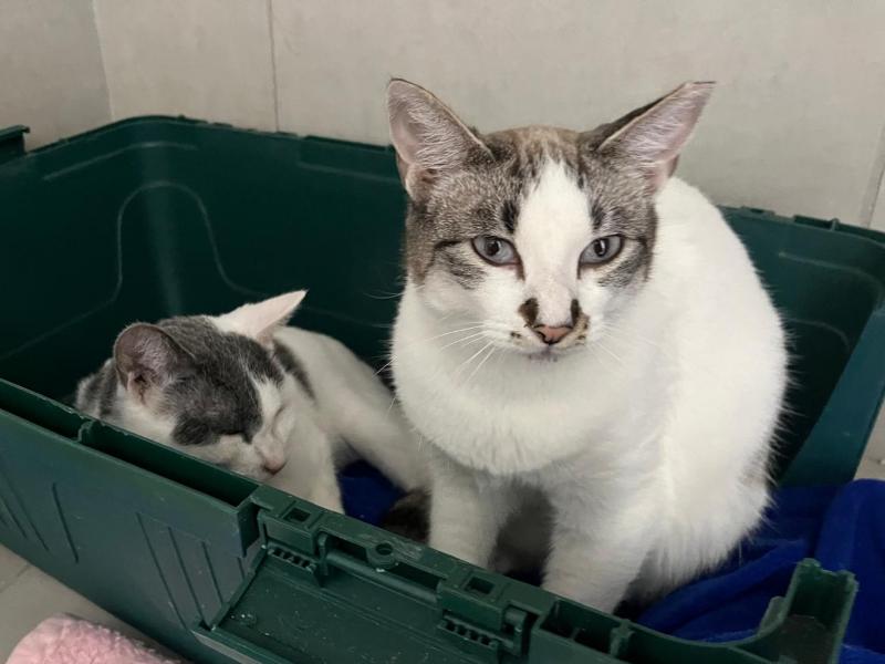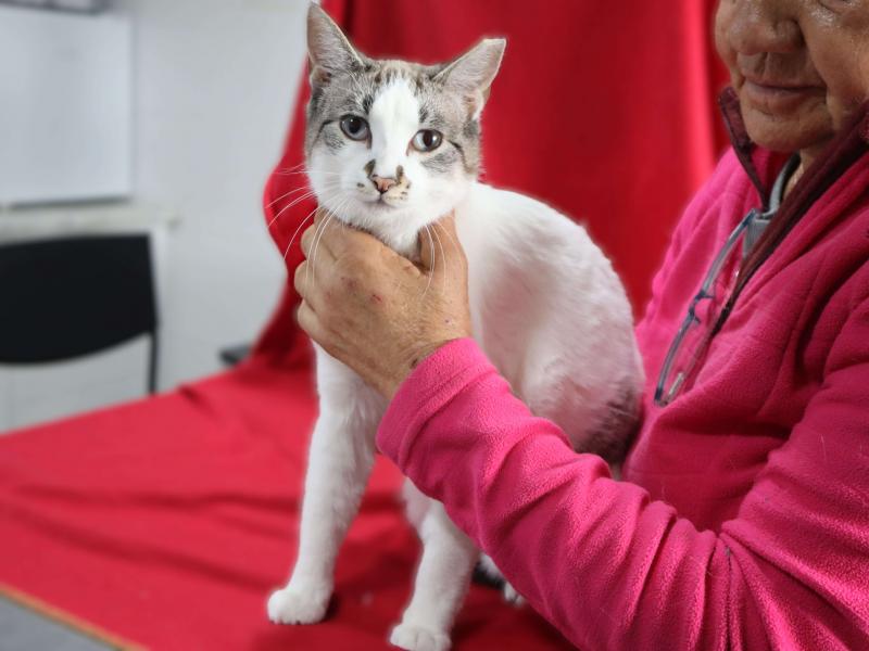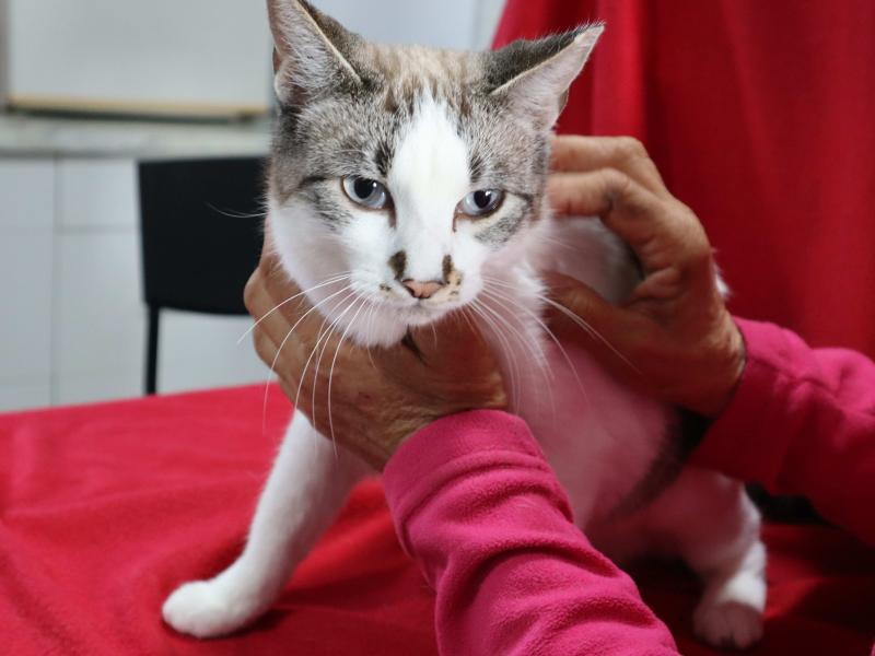 Nome do animal: PRADAReferência: 11577Tipo de animal: GatoSexo: FêmeaData de nascimento: 01/01/2024 (1 anos 11 meses)Cor: Branco e CinzaIdade: Gatinho/aPorte: IndefinidoSociável com: Não testadoApadrinharAdoptar