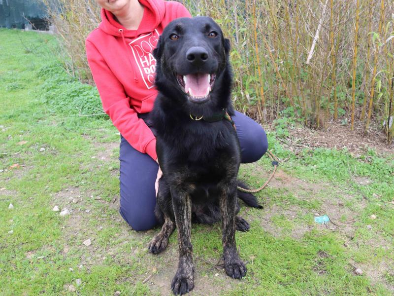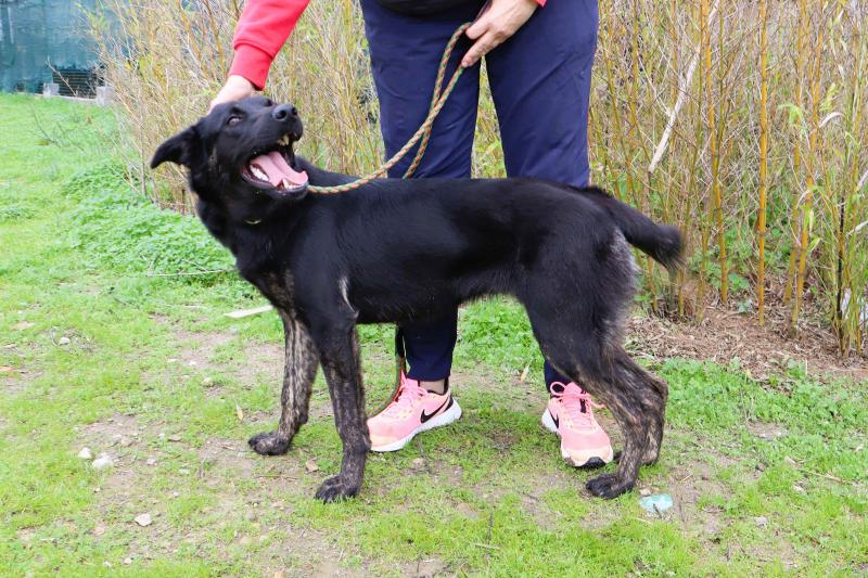 Foi certamente abandonada, pois não é uma cadela habituada a viver na rua. Está muito habituada a pessoas e é extremamente meiga.