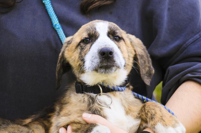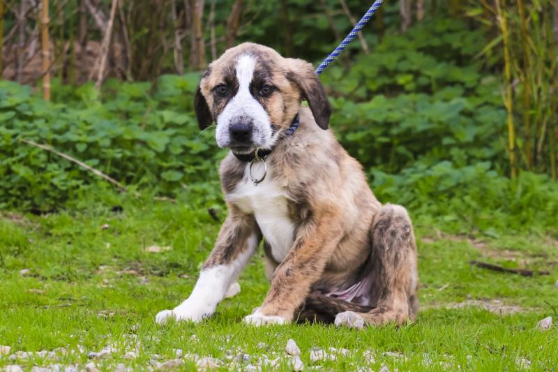 A mãe é de porte grande e não sabemos quem é o pai, mas tudo indica que ambos sejam cruzados de Rafeiro Alentejano, portanto cães de grande porte.