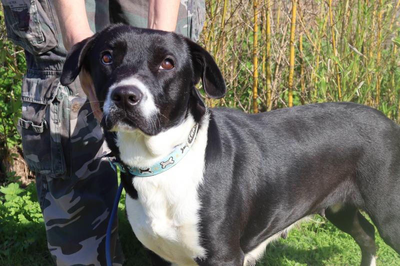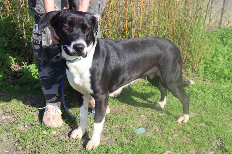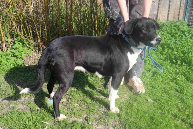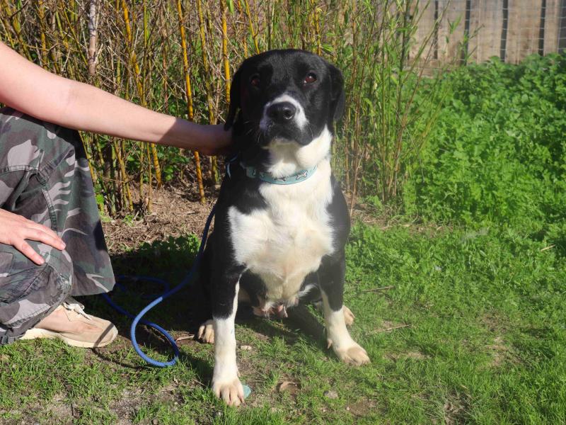 É sociável e amigável com outros cães e passeia muito bem à trela.