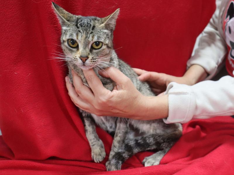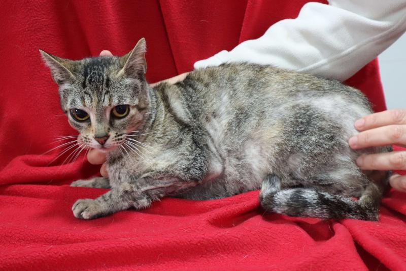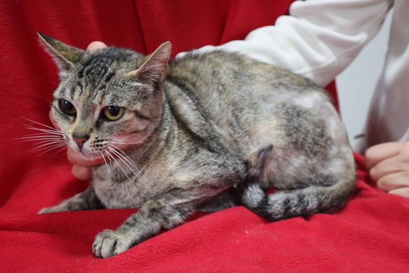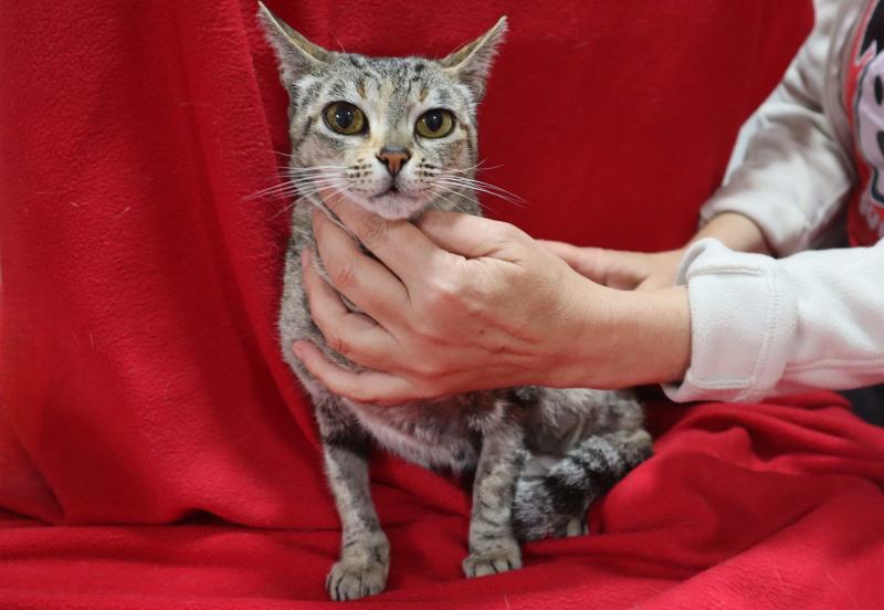 A Skye foi encontrada na estrada, perto do abrigo. Só pode ter sido abandonada ali de propósito. Andava desorientada, mas quando alguém se aproximou e a apanhou, deixou-se levar sem qualquer resistência. Não tentou fugir, comportava-se como uma gatinha habituada a ser pegada ao colo. Não há dúvidas de que teve uma casa.