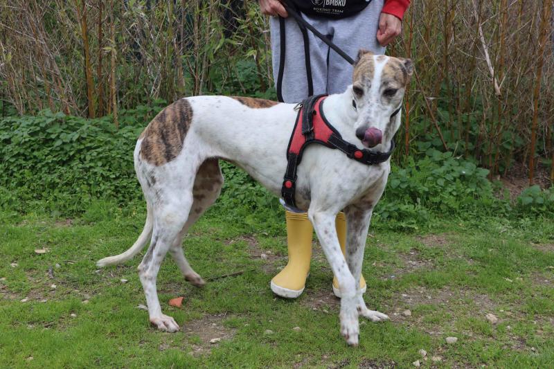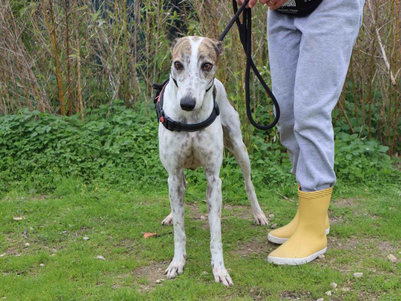 Nome do animal: CHARLIEReferência: 11638Tipo de animal: CãoSexo: FêmeaData de nascimento: 01/09/2019 (6 anos 3 meses)Cor: Branco e CastanhoRaça: GalgoCruzadoIdade: AdultoPorte: Médio (16-20kg)Sociável com: Não testadoApadrinharAdoptar
