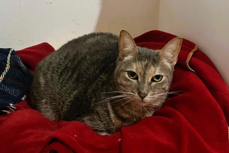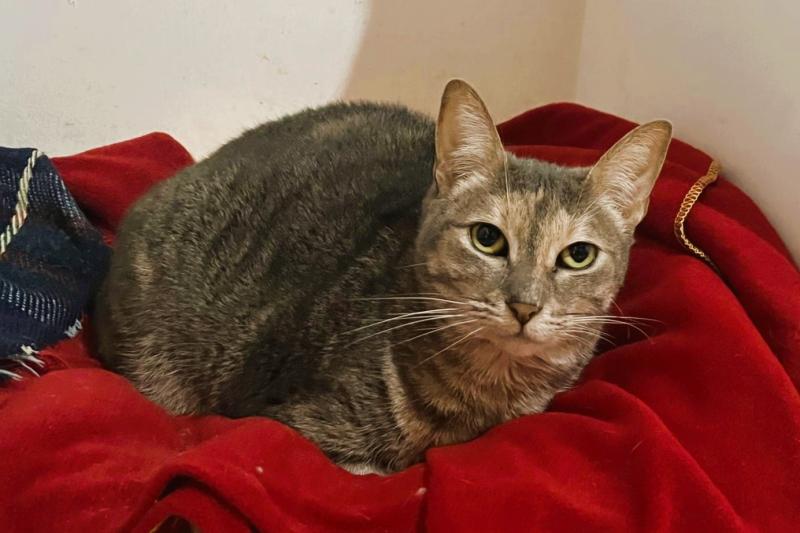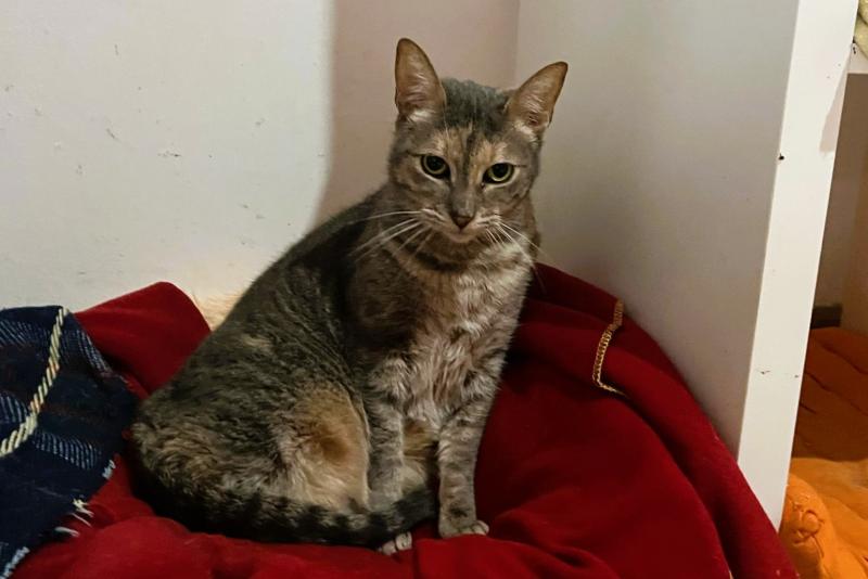 A Francesca foi entregue no abrigo juntamente com outros três gatos após a morte do seu tutor. É uma gata tímida e, nos primeiros dias, manteve-se escondida, mas com o tempo ganhou confiança e começou a confiar em nós.