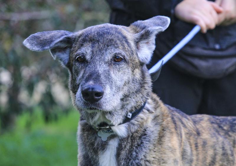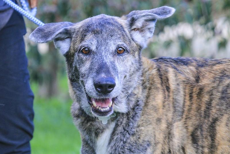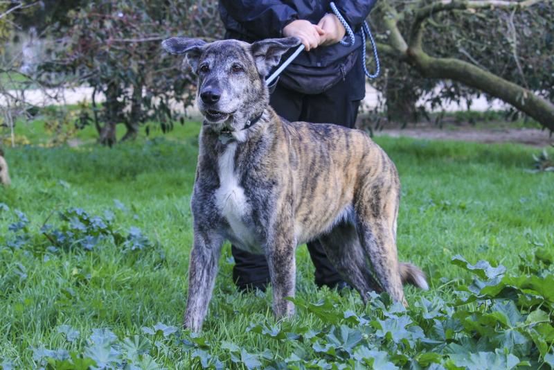 A Ara foi deixada no abrigo pela sua antiga tutora, que alegou já não ter condições financeiras para ter um cão. A pobre Ara viveu toda a sua vida num lar desde cachorra e, chegar ao abrigo nesta fase da vida foi um choque enorme para ela. Está muito nervosa, esconde-se num canto, treme e tenta fugir.