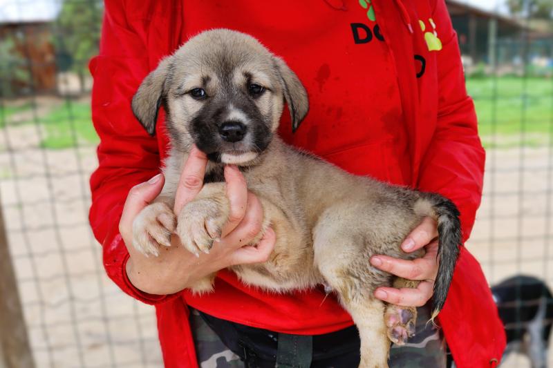 A Lily foi encontrada na rua com os seus 7 recém-nascidos, dos quais o Leo. Foram todos levados para o abrigo em segurança. Desde então, os cachorros cresceram, já comem sozinhos e estão prontos para adoção.