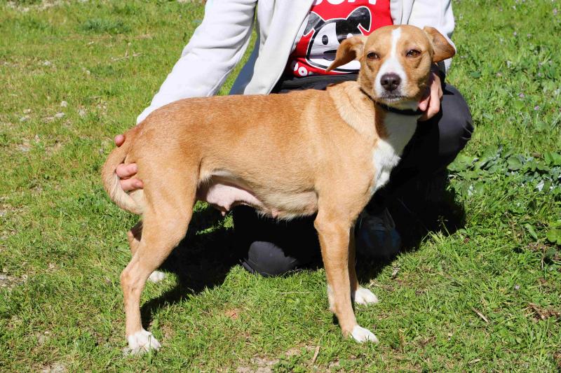 A Nuala foi encontrada na rua com 5 cachorros recém-nascidos. Foram todos levados para o abrigo.