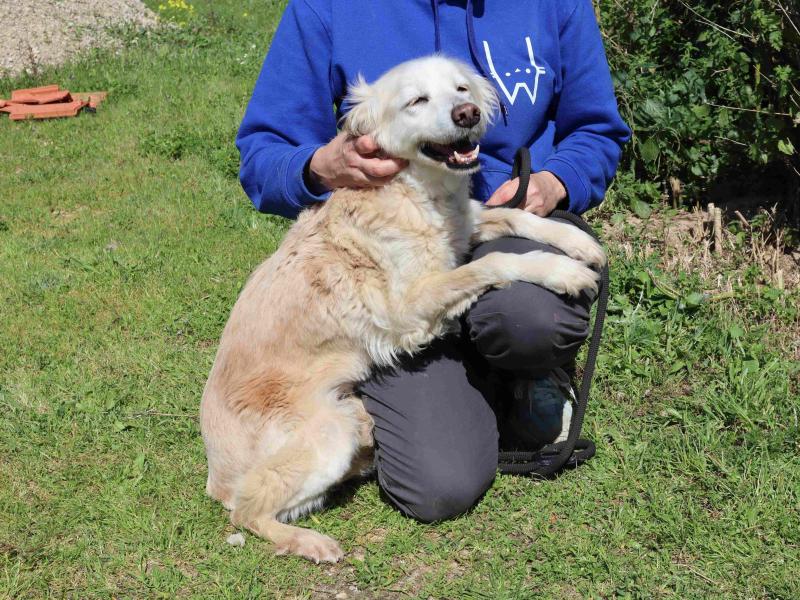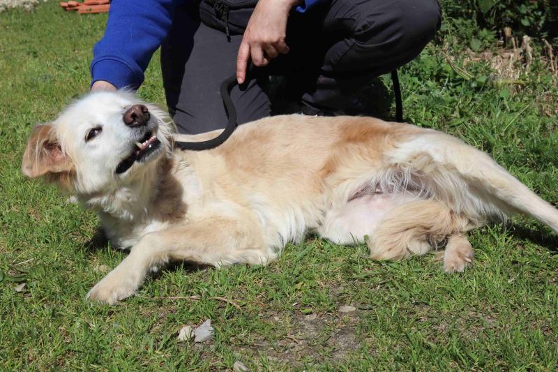 O abrigo não é um lugar para uma cadela como ela. Está assustada, tudo é demasiado para ela. Treme, mas ao mesmo tempo abana a cauda e aproxima-se das pessoas devagar, quase como se estivesse a pedir ajuda.
