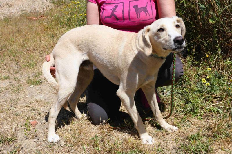 É sociável com outros cães. Porta-se bem nos passeios de trela.